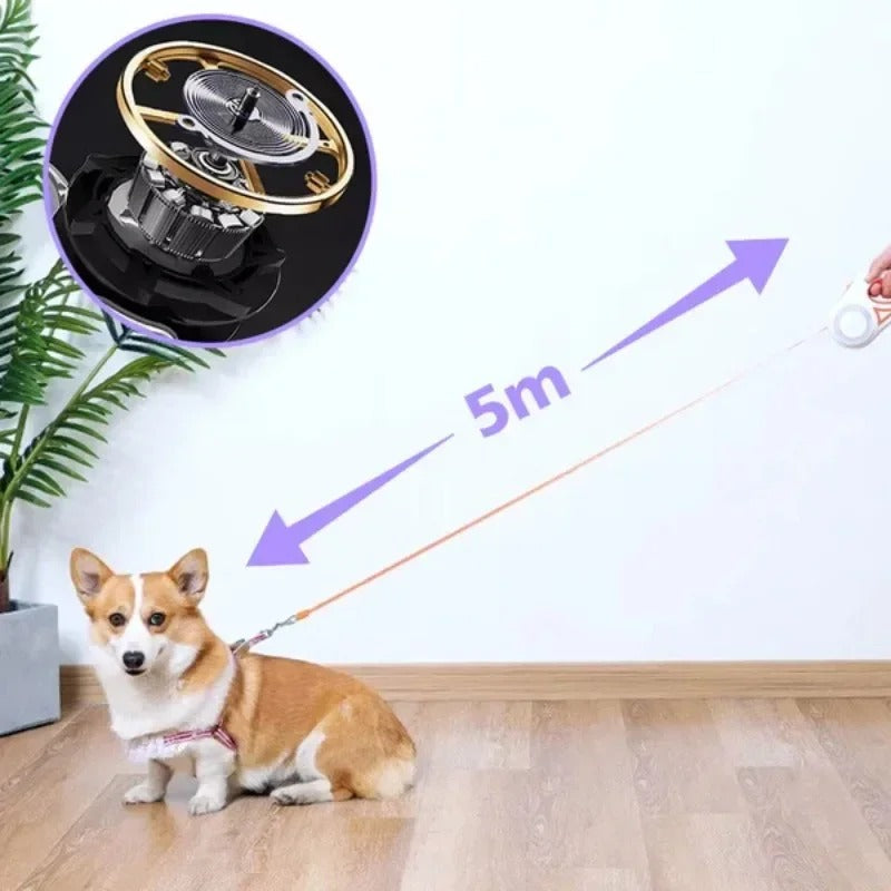 An easy locking button lets you quickly adjust the leash length up to 5 meters, giving your dog freedom while keeping full control.
